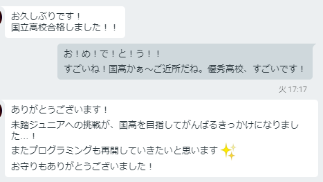 彼女は、anyを開講した最初のころの生徒さんで、一緒に「未踏ジュニア」というプログラミングのコンテストにも挑戦した仲です。